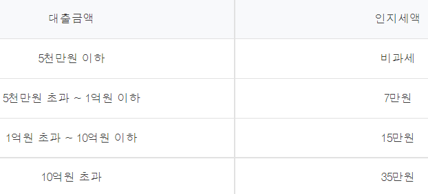 인지세란 인지세법에 의해 대출약정 체결 시 납부하는 세금으로 대출금액에 따라 세액이 차등 적용되며 인지세는 고객과 부담이 각각 50%씩 부담합니다.