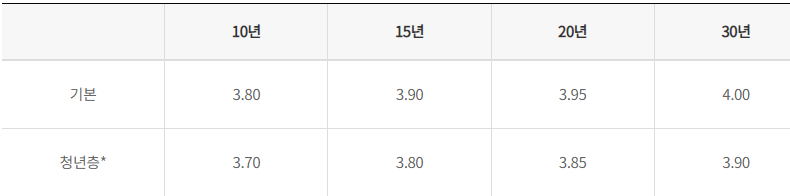 대출기간은 10년, 15년, 20년, 30년 기간 설정 가능합니다.