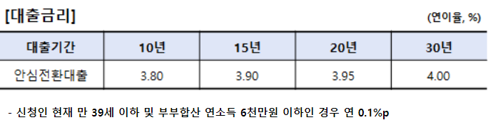 우리은행 안심전환대출 대출한도 및 금리