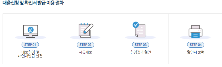 확인서 출력 "마이페이지/대출신청결과/대리대출(확인서)신청결과"에서 [확인서출력]버튼이 보여지면 프린터로 출력하실 수 있습니다.