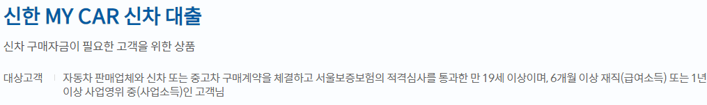신한은행 자동차대출은 중고차, 신차 둘 다 있는데 지금 소개해드릴 상품은 신차 구매자금에 필요한 상품을 소개해드릴 예정이며 다른 자동차대출 중고차, 신차 대출이 궁금하신 분들은 글 하단을 참고 하시길 바랍니다.