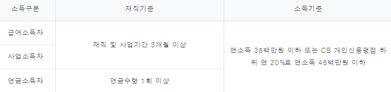 이 상품은 국민행복기금의 보증서 발급이 가능하고 아래의 자격 기준을 만족하는 분에 한해 가능합니다.