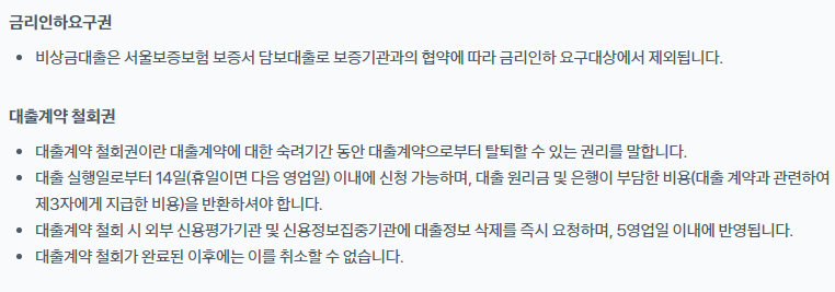 이 상품은 대출계약철회권은 가능하지만 금리인하요구권은 불가합니다.