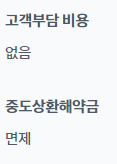 고객 부담 비용 및 중도상환해약금은 없거나 면제입니다.
