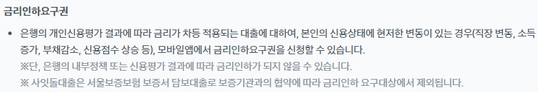 금리인하요구권 적용이 가능합니다.(보통 안해준다고 하며 저도 거절 당했습니다 ;;)