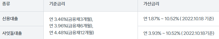 신용대출은 최저 연 5.33% ~ 15%