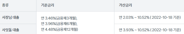 대출금리는 위와 같으며 포스팅일 기준 금리는 위와 같습니다.