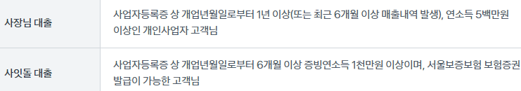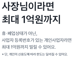 - 정상 영업 중인 사업자등록번호 보유 개인사업자(휴,폐업 중이거나 법인사업자는 제외)