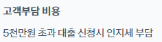 인지세란 대출 신규 약정 시 내는 세금으로 대출금액 5천만원 이하일 경우 비과세이며 5천만원 초과 시 인지세 7만원, 대출금액 1억원 초과 시 인지세 15만원을 은행과 고객이 각각 50%씩 부담하게 됩니다.