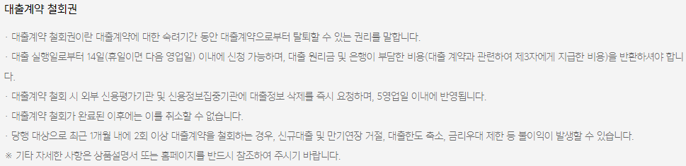 대출 실행 후 14일 이내 대출계약 철회권 가능