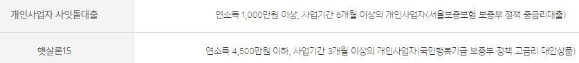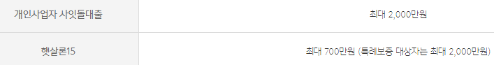 카카오뱅크 개인사업자대출 상품의 종류는 두 가지로 개인사업자 사잇돌대출 및 햇살론15가 있씁니다.