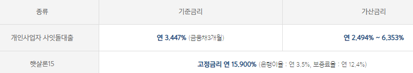햇살론15의 경우 고정금리 연 15.9%입니다.