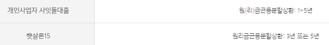 햇살론15의 경우 원리금균등분할상환만 가능하며 기간은 3년 또는 5년 중 선택하게 됩니다.
