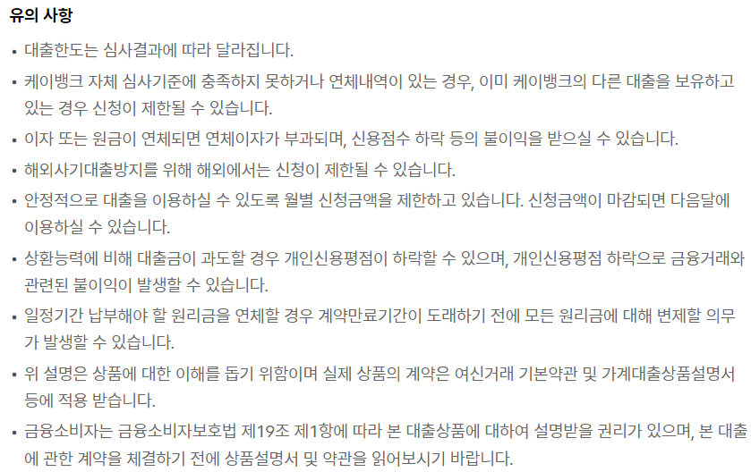 케이뱅크 비상금대출 기타사항 및 신청방법
