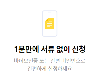 서류 없이 케이뱅크 스마트폰 App을 통해 신청 가능합니다.