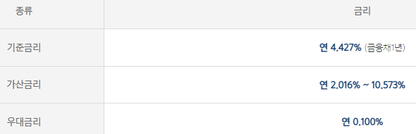 대출금리는 일반,중신용비상금대출에 따라 아래와 같이 나뉩니다.
