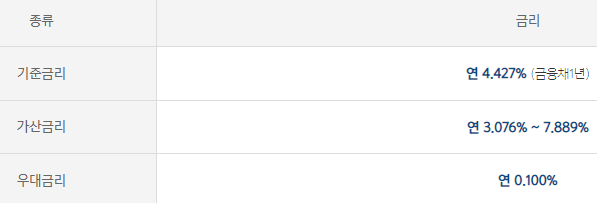 최저 연 금리 7.403% ~ 최고 연 금리 12.316%