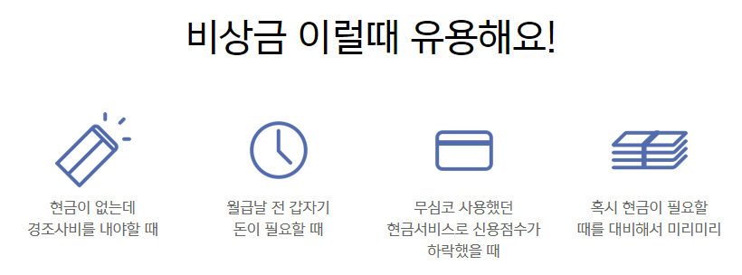 신청 고객에 신용에 따라 일반비상금대출과 중신용비상금대출로 나누어집니다.