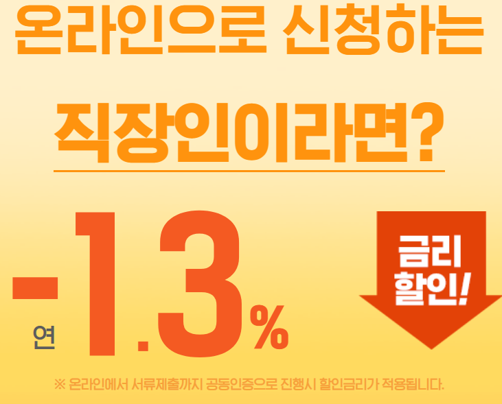 - 온라인 햇살론 진행 시 1.3% 금리인하