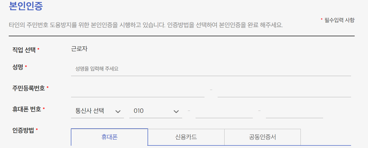 먼저 휴대폰 인증을 하고 나면 재직정보 및 주거정보를 적고 한도조회를 합니다.