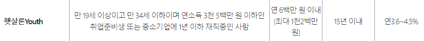햇살론유스는 청년들을 위한 상품으로 나이 제한은 위와 같습니다.