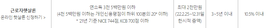 근로자햇살론은 근로자를 위한 햇살론으로 조건은 위와 같습니다.
