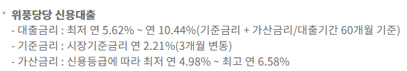 일반 위풍당당신용대출의 경우 최소 3백만원 이상부터 최대 1억원까지 10만원 단위로 한도 내에서 빌릴 수 있습니다.