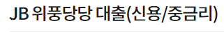 전북은행 신용대출 상품의 이름은 JB위풍당당 대출로 일반신용대출과 중금리 신용대출로 나누어져 있습니다.