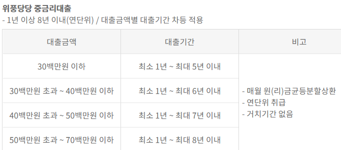 전북은행 신용대출(일반,중금리) 기간 및 상환방법