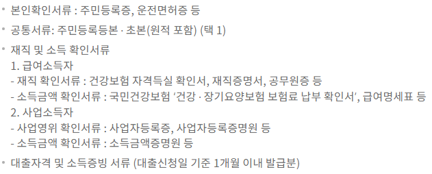 단 위의 서류들은 모바일로 대출 신청 시 인증서를 통한 자동 제출됩니다.