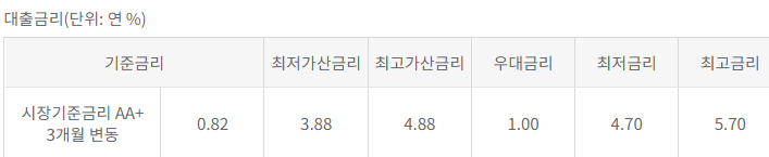 대출한도는 최대 2천만원까지 가능하며 금리는 아래와 같습니다.