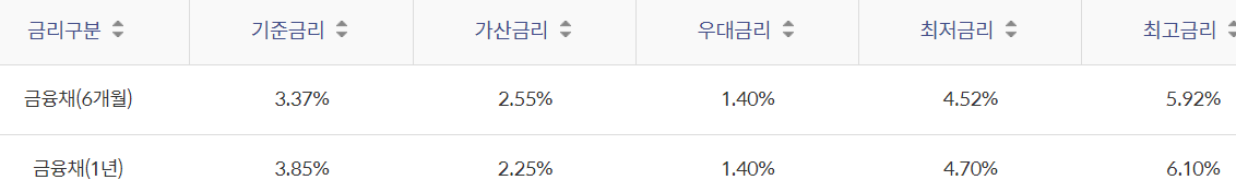 대출금리는 아래와 같습니다.