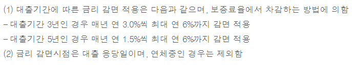단 성실상환 금리감면혜택이 있어 대출기간에 따라 아래와 같이 금리가 감면됩니다.