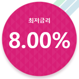 대출금리는 8.5%가 기본금리이며, 우대금리조건으로 서민금융진흥원 신용,부채 컨설팅 이수하신분들에겐 연 0.5%의 우대금리를 적용하고 있습니다.