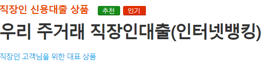 이 상품은 우리은행 주거래 직장인이라면 진행 가능한 대출입니다.