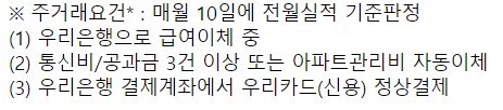 꼭 주거래 은행이 지금 아니더라도 주거래 요건은 아래와 같이 간단하니 충분히 주거래요건을 충족할 수 있습니다.