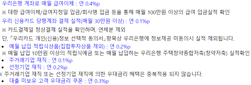 주거래요건을 충족하면서 아래 우대금리 조건과 겹치는 부분이 많아 주거레 요건을 충족하면서 진행하셔도 무방합니다.