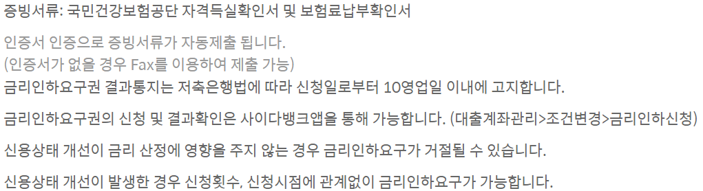 금리인하요구권은 본인의 신용상태에 현저한 변동이 있는 경우(직장 변동,소득 증가 ,부채 감소,신용등급 상승 등)