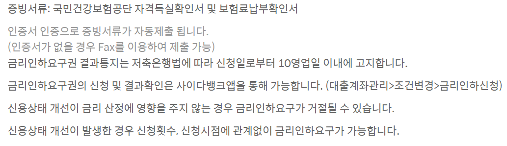 사이다뱅크 중금리신용대출 기타사항 및 신청방법