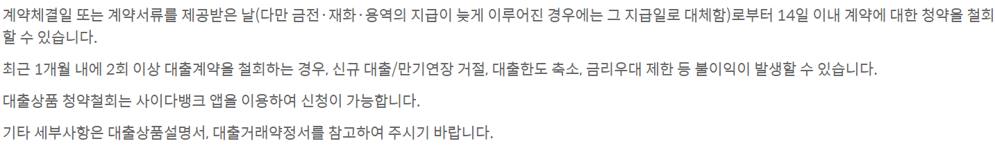 대출 실행 후 14일 이내 계약에 대한 청약을 철회할 수 있습니다.