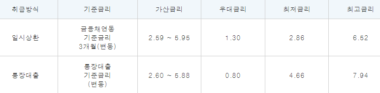 대출금리는 위와 같으며 우대금리 조건은 아래와 같습니다.