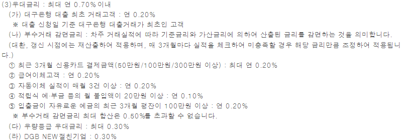 대구은행 직장인 신용대출 기타사항 및 필요서류