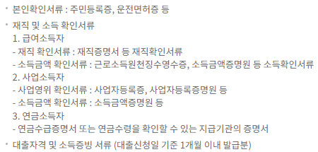 대출 진행 시 필요한 서류는 아래와 같습니다.