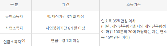 여기서 말하는 신용평점 하위20%는 NICE 기준 744점, KCB 기준 700점 이하면 가능합니다.