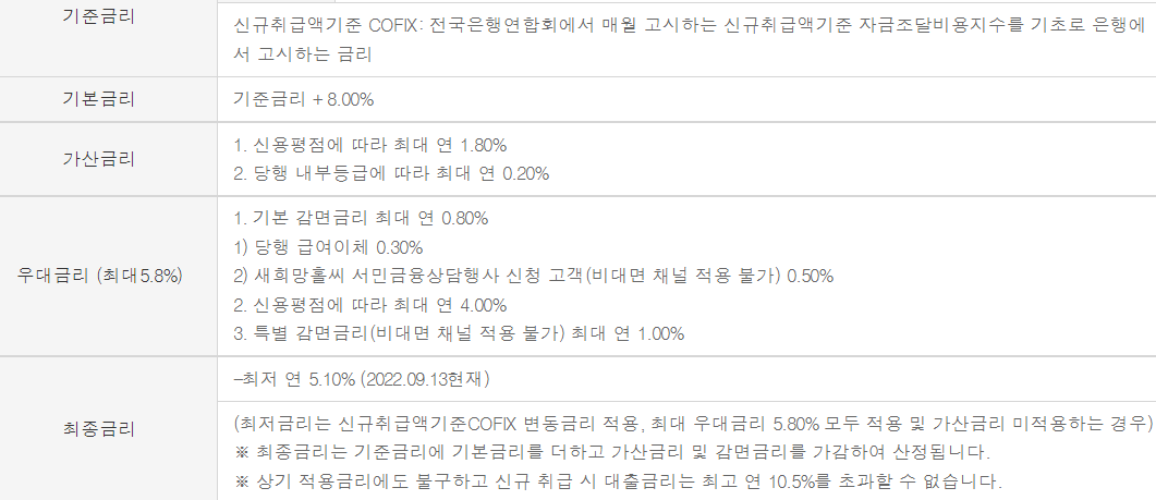 새희망홀씨는 소득이 적거나 신용등급이 낮아 은행에서 대출을 받기 어려운 분들을 위해 별도의 심사기준을 마련하여 대출해 주는 은행의 서민 맞춤형 대출상품입니다.
