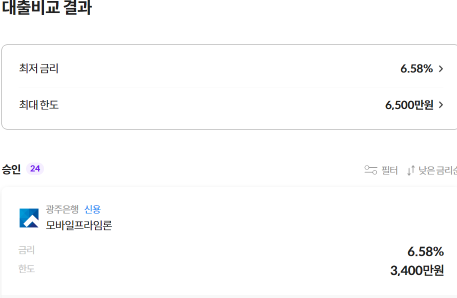 저는 최저금리 , 최대한도 등 이렇게 나왔네요 ㅎㅎ