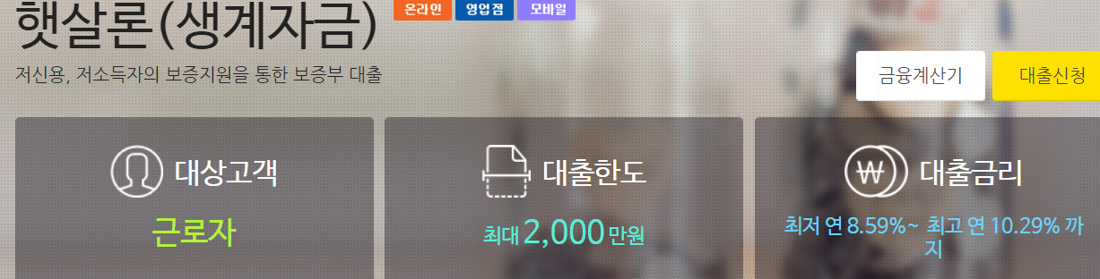 키위뱅크 햇살론 대출 조건 금리 한도 신청방법 알아봐요