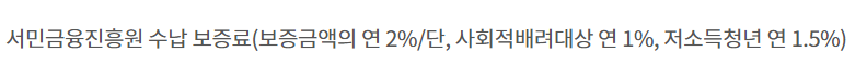 단 서민금융진흥원에서 보증을 서주는 것으로 보증료는 아래와 같이 있습니다.