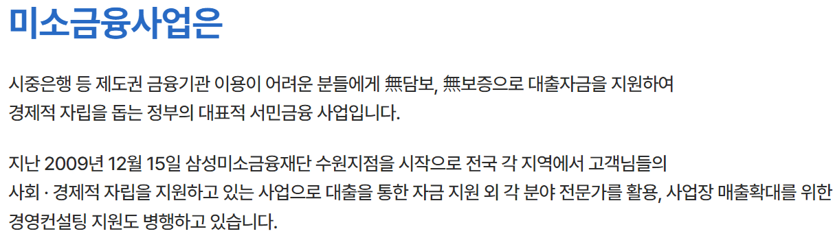 삼성미소금융재단 대출 정보