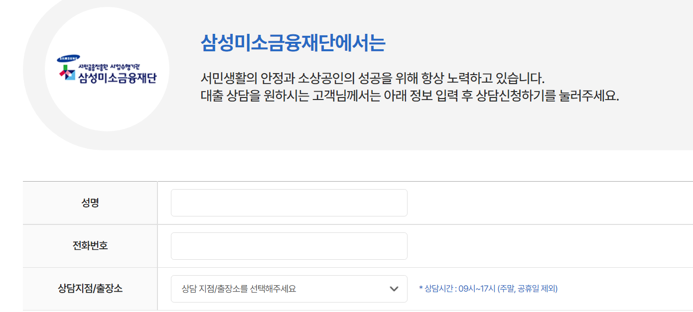 상담 신청은 아래 삼성미소금융재단 홈페이지를 통해 가능합니다.